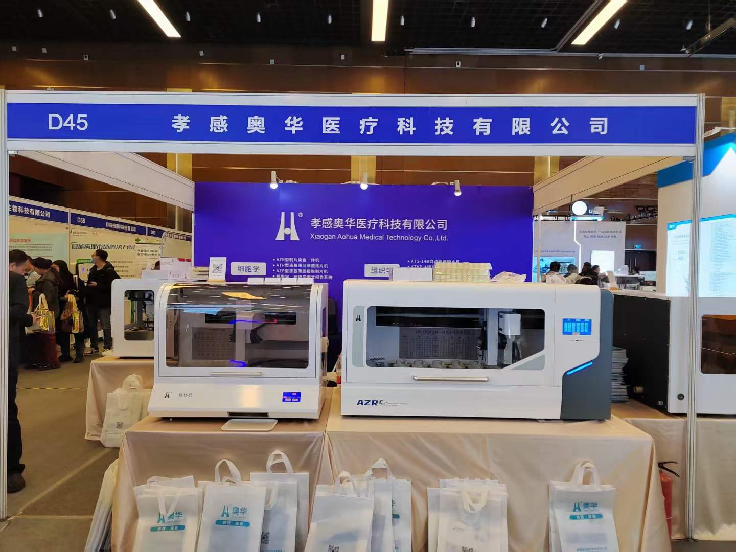 會議上,孝感奧華最新設(shè)備:AZR-E制片染色一體機。此設(shè)備高自動化,易操作,高通量,高效率,通量64片,制片染色1~64任意數(shù)量只標本,制片小于1min/片。為廣大病理老師們帶來更加自動化、智能化、標準化的使用體驗。